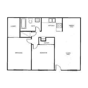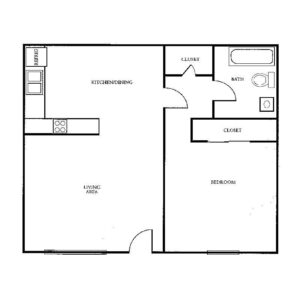 The one-bedroom, one-bath (590 sq. ft.) apartment provides cozy, efficient living with a bright living area, modern kitchen, and spacious bedroom. For those who need more room, our two-bedroom, one-bath (740 sq. ft.) floor plan offers generous living space and a master suite complete with a large walk-in closet that’s a resident favorite.